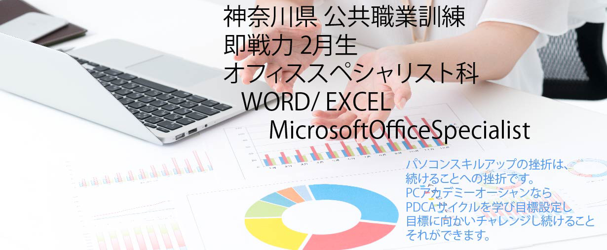 パソコンスクールPCアカデミーオーシャン小田原校にて実施予定の公共職業訓練「即戦力」令和7年2月生 訓練番号:6番 オフィススペシャリスト科です。